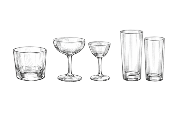 Highball/Collins: Used for tall drinks (Mule, Jack & Coke). Emphasizes carbonation; keeps the drink light and refreshing.